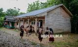 Sejumlah siswa berlari saat jam istirahat di SD Negeri 2 Sorongan kelas jauh Batu Payung, Cibaliung, Pandeglang, Banten, Kamis (20/11/2025). Sebanyak 23 siswa dan satu guru yang mengajar di daerah terpencil Kabupaten Pandeglang tersebut hanya memiliki satu ruang belajar yang rusak parah untuk menampung siswa dari kelas satu hingga enam. (FOTO : ANTARA FOTO/Muhammad Bagus Khoirunas)
