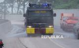 Pemerintah Kabupaten Lumajang mengerahkan sejumlah personel pemadam kebakaran dan satu unit kendaraan meriam air (water cannon) untuk membersihkan jalan yang terdampak abu vulkanik erupsi Gunung Semeru.