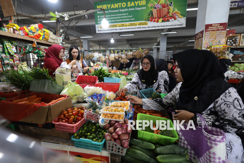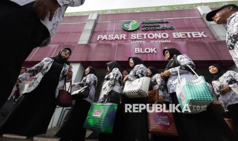 REPUBLIKA.CO.ID, KEDIRI -- Sejumlah guru membeli makanan tradisional jenang saat aksi borong dagangan pasar di Pasar Bawang, Kota Kediri, Jawa Timur, Jumat (21/11/2025).