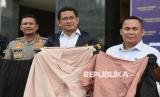 REPUBLIKA.CO.ID, JAKARTA -- Personel Direktorat Reserse Kriminal Khusus Polda Metro Jaya berjaga di samping barang bukti pakaian bekas impor yang disita di Polda Metro Jaya, Jakarta Pusat, Jumat (21/11/2025).