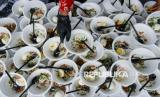 Kegiatan memasak seribu porsi laksa tersebut dilakukan dalam gelaran Culinary Day Kota Tangerang. Culinary Day menjadi ajang untuk memperkenalkan kekayaan kuliner terutama Laksa Tangerang sebagai identitas kota. (FOTO : ANTARA FOTO/Putra M. Akbar)