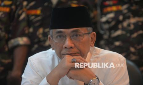 Ketua Umum PBNU KH Yahya Cholil Staquf menegaskan seluruh persoalan organisasi harus dikembalikan kepada AD/ART dan sistem konstitusi yang berlaku. (FOTO : Republika/Prayogi)