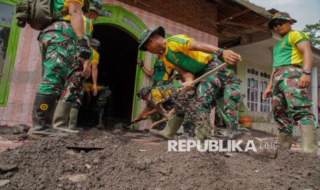 REPUBLIKA.CO.ID, LUMAJANG -- Personel TNI Divisi Infanteri (Divif) 2 Kostrad membersihkan rumah dari material vulkanik Gunung Semeru di Desa Supiturang, Pronojiwo, Lumajang, Jawa Timur, Senin (24/11/2025).