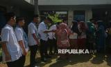 Orang tua memberikan kue kepada perwakilan guru saat kegiatan peringatan Hari Guru Nasional di SLB D-D1 YPAC Jakarta, Selasa (25/11/2025). Kegiatan yang diinisiasi orang tua siswa tersebut diselenggarakan dalam rangka Hari Guru Nasional yang diperingati setiap 25 November. Para pelajar dan orang tua mempersembahkan sejumlah hiburan dan hadiah kepada para guru sebagai ucapan terimakasih atas dedikasinya menjaga, merawat dan mengedukasi anak-anaknya selama kegiatan belajar mengajar. (FOTO : Republika/Thoudy Badai)
