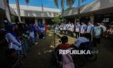 Siswa dan orang tua mengikuti kegiatan peringatan Hari Guru Nasional di SLB D-D1 YPAC Jakarta, Selasa (25/11/2025). Kegiatan yang diinisiasi orang tua siswa tersebut diselenggarakan dalam rangka Hari Guru Nasional yang diperingati setiap 25 November. (FOTO : Republika/Thoudy Badai)