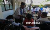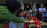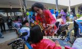 Guru berinteraksi dengan siswa saat kegiatan peringatan Hari Guru Nasional di SLB D-D1 YPAC Jakarta, Selasa (25/11/2025). Kegiatan yang diinisiasi orang tua siswa tersebut diselenggarakan dalam rangka Hari Guru Nasional yang diperingati setiap 25 November. Para pelajar dan orang tua mempersembahkan sejumlah hiburan dan hadiah kepada para guru sebagai ucapan terimakasih atas dedikasinya menjaga, merawat dan mengedukasi anak-anaknya selama kegiatan belajar mengajar. (FOTO : Republika/Thoudy Badai)