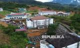 Foto udara kondisi longsor di kampus UIN Imam Bonjol Sungai Bangek, Padang, Sumatera Barat, Selasa (25/11/2025). Longsor terjadi karena turap penahan tanah pada bangunan gedung Fakultas Ekonomi dan Bisnis Islam (FEBI) itu runtuh dan menimpa 10 unit motor dan tiga unit mobil yang sedang terparkir. (FOTO : ANTARA FOTO/Iggoy el Fitra)