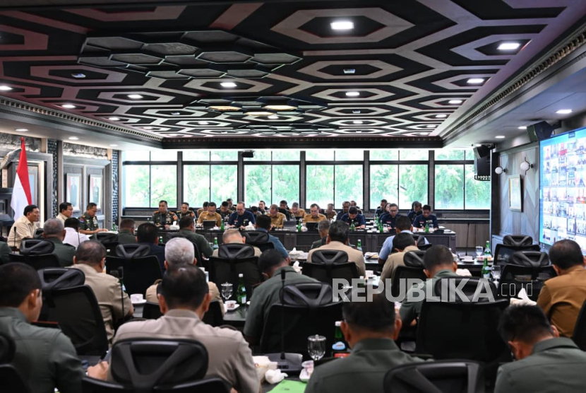 REPUBLIKA.CO.ID, JAKARTA -- Panglima TNI Jenderal TNI Agus Subiyanto bersama Menhan RI Sjafrie Sjamsoeddin mendampingi Presiden RI Prabowo Subianto dalam Rapat Evaluasi Percepatan Pembangunan Koperasi Desa/Kelurahan Merah Putih (KDKMP) yang digelar secara virtual dengan jajaran TNI serta pemerintah daerah di seluruh Indonesia yang berlangsung di Mabes TNI, Cilangkap, Jakarta Timur, Selasa (25/11/2025).