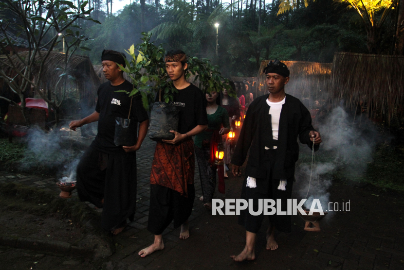 REPUBLIKA.CO.ID, MALANG -- Seniman melakukan aksi teatrikal berjudul The Magical Holy Tree di kawasan hutan lereng Gunung Kawi, Malang, Jawa Timur, Rabu (26/11/2025).