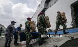 REPUBLIKA.CO.ID, JAKARTA -- Satgas TNI AL berjalan masuk ke dalam KRI dr Soeharso untuk misi kemanusiaan ke wilayah terdampak bencana di Kolinamil TNI AL, Jakarta, Ahad (30/11/2025).
