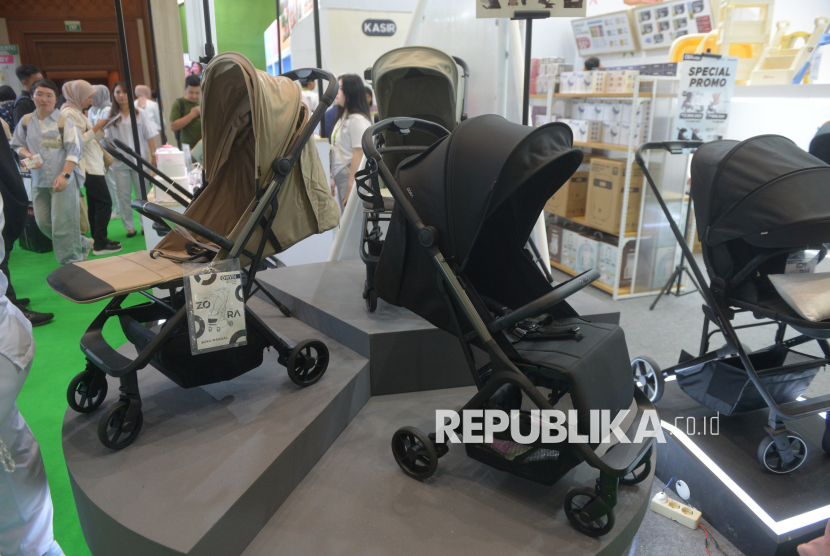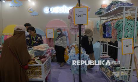 Pengunjung mencari perlengkapan anak dalam pameran Indonesia Maternity, Baby & Kids Expo (IMBEX) 2025 di Jakarta International Convention Center (JICC), Senayan, Sabtu (29/11/2025). Pameran kebutuhan ibu, bayi, dan anak terbesar serta terlengkap ini kembali hadir hingga 30 November 2025. Tahun ini, IMBEX menghadirkan lebih dari 600 brand ternama pilihan keluarga muda Indonesia yang menyediakan berbagai produk dan layanan untuk ibu hamil, bayi, dan anak, mulai dari perlengkapan harian, makanan bergizi, pendidikan, kesehatan, hingga solusi keuangan bagi keluarga. (FOTO : Republika/Prayogi)