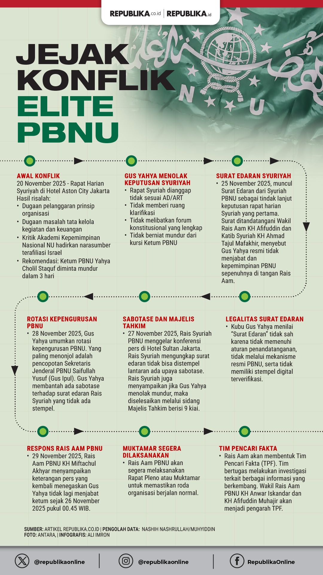 Berikut rangkuman kronologi konflik PBNU dari awal keluarnya keputusan Syuriyah hingga perkembangan terbaru: