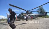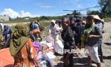 REPUBLIKA.CO.ID, AGAM -- Petugas TNI memandu warga menjemput bantuan yang didistribusikan dari Helikopter Caracal Skadron Udara 8 Lanud Atang Sendjaja di daerah terisolir akibat bencana di Nagari Tiku V Jorong, Agam, Sumatera Barat, Senin (1/12/2025).