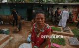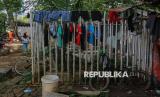 Warga berada di depan rumahnya saat proses relokasi di area Tempat Pemakaman Umum (TPU) Menteng Pulo II, Jakarta, Selasa (2/12/2025). Pemerintah Provinsi DKI Jakarta merelokasi 105 KK yang bermukim di kawasan TPU Menteng Pulo II ke Rusunawa Jagakarsa sebagai upaya mengembalikan kembali fungsi lahan dan pemakaman sebagaimana mestinya. (FOTO : Republika/Thoudy Badai)