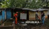 Petugas mendata warga yang tinggal di area Tempat Pemakaman Umum (TPU) Menteng Pulo II, Jakarta, Selasa (2/12/2025). Pemerintah Provinsi DKI Jakarta merelokasi 105 KK yang bermukim di kawasan TPU Menteng Pulo II ke Rusunawa Jagakarsa sebagai upaya mengembalikan kembali fungsi lahan dan pemakaman sebagaimana mestinya. (FOTO : Republika/Thoudy Badai)