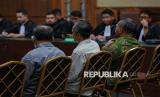 Terdakwa kasus dugaan suap terhadap putusan lepas perkara korupsi pemberian fasilitas ekspor minyak sawit mentah (CPO) Djuyamto, Agam Syarif Baharudin, dan Ali Muhtarom bersiap mengikuti sidang pembacaan putusan di Pengadilan Tipikor, Jakarta, Rabu (3/12/2025). Majelis hakim memvonis ketiga terdakwa mantan hakim yang menjatuhkan vonis lepas (ontslag) terhadap kasus korupsi pemberian fasilitas ekspor minyak sawit mentah (crude palm oil/CPO) yakni Djuyamto, Agam Syarif Baharudin, dan Ali Muhtarom dengan hukuman pidana penjara 11 tahun dan denda Rp500juta subsider enam bulan kurungan. (FOTO : Republika/Thoudy Badai)