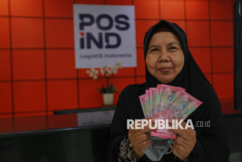 Masyarakat penerima manfaat melakukan pencairan dana Bantuan Langsung Tunai Sementara Kesejahteraan Rakyat (BLTS Kesra) di Kantor Pos Premier Rawamangun, Jakarta Timur, Kamis (4/12/2025). Bantuan tunai senilai Rp900 ribu tersebut untuk tiga bulan dari Oktober - Desember dan akan dituntaskan pencairannya hingga akhir Desember mendatang, hingga saat ini pencairan sudah direalisasikan 75 persen. Program BLTS Kesra tersebut menyasar sebanyak 35 juta keluarga penerima manfaat (KPM) kurang mampu yang diharapkan dapat mendorong daya beli masyarakat pada kuartal IV-2025. (FOTO : Republika/Thoudy Badai)