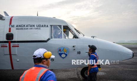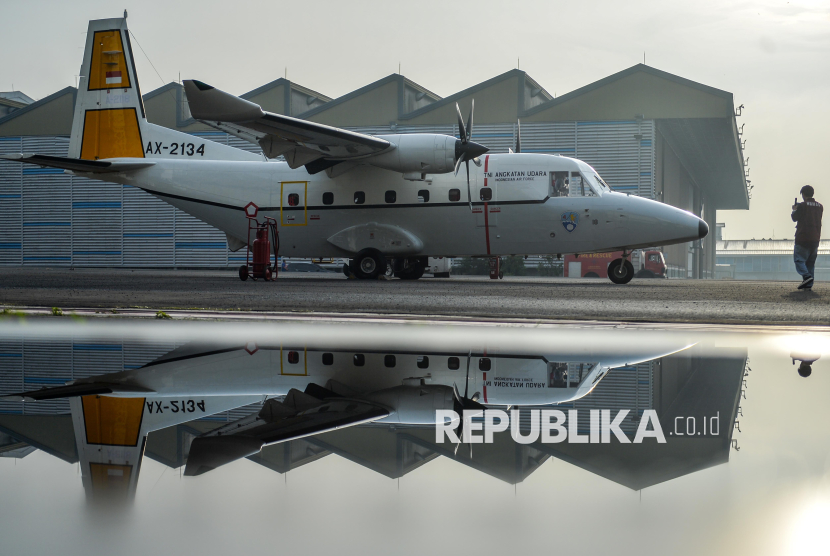 REPUBLIKA.CO.ID, BANDUNG -- Petugas dari PT Dirgantara Indonesia (PTDI) melakukan pengecekan pesawat NC212i saat serah terima pesawat di Hanggar Delivery Center PTDI, Bandung, Jawa Barat, Kamis (4/12/2025).