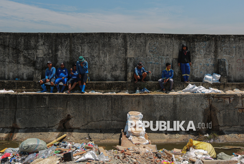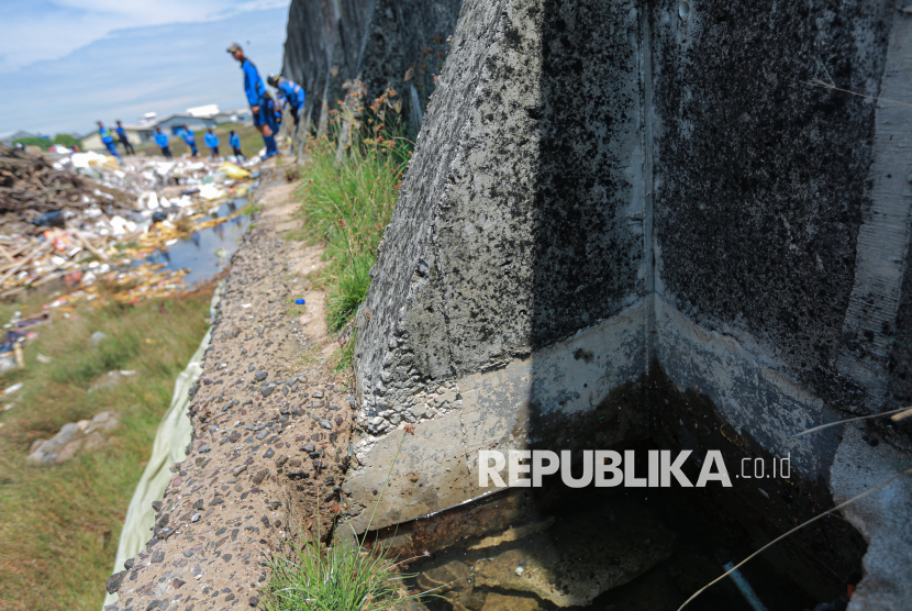 Tanggul Muara Baru yang sempat mengalami kebocoran pada Kamis (4/12) kemarin, kini sudah diperbaiki oleh petugas untuk menahan laju air sementara sebelum dibangun proyek pembuatan giant sea wall atau National Capital Integrated Coastal Development (NCICD) sepanjang 28,2 kilometer.
