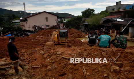 REPUBLIKA.CO.ID, SIBOLGA -- Keluarga menunggu proses evakuasi jasad kerabatnya yang menjadi korban bencana tanah longsor di Aek Manis, Sibolga, Sumatera Utara, Jumat (5/12/2025).