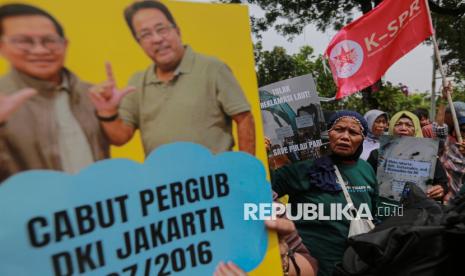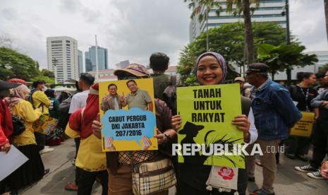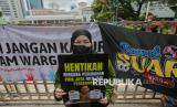 Dalam aksinya massa menolak segala bentuk penggusuran paksa, kriminalisasi terhadap warga, hingga privatisasi air Jakarta.