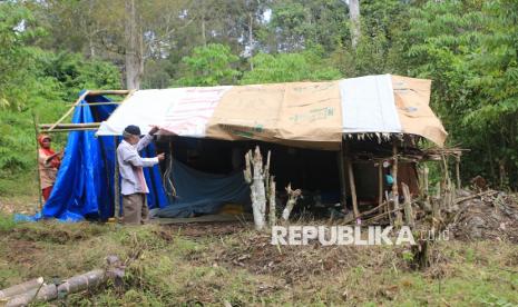 Sejumlah warga korban banjir merapihkan tenda darurat di kawasan hutan Desa Kuta Teugoh, Beutong Ateuh Banggalang, Nagan Raya, Aceh, Kamis (11/12/2025). Sebagian warga korban banjir dari Desa Babah Suak dan Desa Kuta Teungoh atau 360 kepala keluarga masih mengungsi di dalam hutan disebabkan rumah mereka terbawa arus pasca bencana hidrometeorologi pada Rabu (26/11) lalu. (FOTO : ANTARA FOTO/Syifa Yulinnas)
