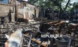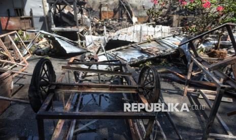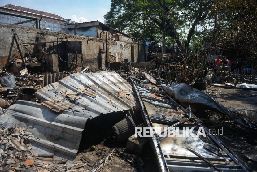 Sisa-Sisa Kios Pedagang yang Hangus Terbakar Akibat Kericuhan di Kalibata