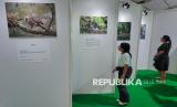 Pengunjung mengamati karya foto yang menampilkan gambar spesies Elang Jawa dalam Pameran Konservasi Spesies Penting Jawa-Bali di Botani Square Mall, Kota Bogor, Jawa Barat, Jumat (12/12/2025). Pameran yang digelar oleh Direktorat Jenderal Konservasi Sumber Daya Alam dan Ekosistem (Ditjen KSDAE) Kementerian Kehutanan bersama Burung Indonesia dan Raptor Indonesia tersebut diikuti oleh 17 unit pelaksana teknis (UPT) Ditjen KSDAE Kementerian Kehutanan dan 13 mitra konservasi yang menampilkan beragam edukasi terkait spesies penting Jawa-Bali seperti Elang Jawa, Badak Jawa, Owa hingga Jalak Bali. Pameran tersebut diharapkan menjadi ruang edukasi bagi warga sekaligus ruang interaksi bersama pegiat konservasi untuk memperkenalkan spesies penting Jawa-Bali sehingga memiliki kesadaran yang sama atas kelestarian lingkungan. (FOTO : Republika/Thoudy Badai)