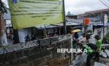Petugas menutup akses jalan di TPU Kober Rawa Bunga, Jatinegara, Jakarta, Kamis (18/12/2025). Pemprov DKI Jakarta akan mengembalikan fungsi lahan di TPU Kober Rawa Bunga yang sebelumnya digunakan sebagai tempat usaha menjadi pemakaman yang dapat menampung 450 petak makam. (FOTO : ANTARA FOTO/Asprilla Dwi Adha)