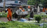Petugas membawa barang bongkaran lapak usaha di TPU Kober Rawa Bunga, Jatinegara, Jakarta, Kamis (18/12/2025). Pemprov DKI Jakarta akan mengembalikan fungsi lahan di TPU Kober Rawa Bunga yang sebelumnya digunakan sebagai tempat usaha menjadi pemakaman yang dapat menampung 450 petak makam. (FOTO : ANTARA FOTO/Asprilla Dwi Adha)