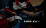 Relawan medis dari Bulan Sabit Merah Indonesia (BSMI) menyiapkan resep obat untuk penyintas banjir bandang Aceh Tamiang di Posko Kesehatan BSMI, Desa Sidodadi, Kecamatan Kejuruan Muda, Aceh Tamiang, Jumat (19/12/2025). Posko layanan kesehatan BSMI tersebut beroperasi selama 24 jam di lokasi terdampak bencana banjir bandang Aceh Tamiang dengan menyediakan dokter umum dan obat-obatan. Sebagian para penyintas mengalami sakit tenggorokan, batuk pilek, hingga demam. (FOTO : Republika/Thoudy Badai)