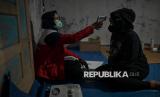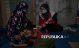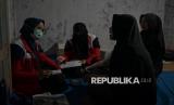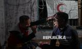 Relawan medis dari Bulan Sabit Merah Indonesia (BSMI) memeriksa kesehatan penyintas banjir bandang Aceh Tamiang di Posko Kesehatan BSMI, Desa Sidodadi, Kecamatan Kejuruan Muda, Aceh Tamiang, Jumat (19/12/2025). Posko layanan kesehatan BSMI tersebut beroperasi selama 24 jam di lokasi terdampak bencana banjir bandang Aceh Tamiang dengan menyediakan dokter umum dan obat-obatan. Sebagian para penyintas mengalami sakit tenggorokan, batuk pilek, hingga demam. (FOTO : Republika/Thoudy Badai)