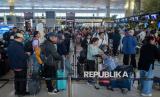 REPUBLIKA.CO.ID, BANTEN -- Calon penumpang antre di area lapor diri di Terminal 3 Bandara Soekarno-Hatta, Kota Tangerang, Banten, Sabtu (20/12/2025).