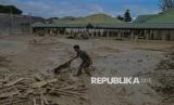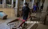 Relawan membersihkan lumpur yang mengendap Rumah Sakit Umum Daerah (RSUD) Aceh Tamiang, Kecamatan Karang Baru, Aceh Tamiang, Aceh, Sabtu (20/12/2025). Pembersihan fasilitas kesehatan itu dilakukan untuk mempercepat pemulihan pascabencana sehingga sejumlah fasilitas kesehatan dapat digunakan kembali untuk pelayanan medis. (FOTO : Republika/Thoudy Badai)