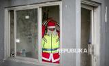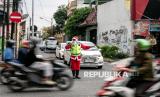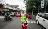 REPUBLIKA.CO.ID, SOLO -- Sukarelawan Pengatur Lalu Lintas (Supeltas) Marthin Hidungoran mengenakan kostum Sinterklas saat mengatur lalu lintas di Perempatan Wora-wari, Solo, Jawa Tengah, Rabu (24/12/2025).