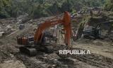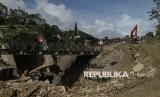 Alat berat beroperasi untuk memperbaiki akses jalur Eks Simpang KKA, Bener Meriah, Aceh, Jumat (26/12/2025). Akses transportasi antar wilayah yang menghubungkan kawasan Bener Meriah menuju Takengon, Aceh Tengah kini kembali tersambung usai jembatan Bailey Weh Paseh tuntas dibangun. Sebelumnya kawasan tersebut sempat putus akibat diterjang banjir bandang dan longsor pada akhir November 2025 lalu. (FOTO : Republika/Thoudy Badai)