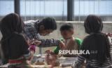 Anak-anak menyelesaikan pembuatan kerajinan keramik dari tanah liat di Lost in Clay Pottery Studio, Taman Ismail Marzuki, Jakarta, Ahad (28/12/2025). Kegiatan ini menjadi wisata alternatif bagi masyarakat sembari belajar keterampilan membuat kerajinan keramik dari tanah liat dengan biaya Rp75.000 hingga Rp105.000 per orang, tergantung paket yang dipilih. Kegiatan membuat kerajinan keramik ini menawarkan pengalaman edukatif dan kreatif melalui proses pengolahan tanah liat hingga menjadi produk jadi, seperti cangkir, vas, atau dekorasi untuk rumah. (FOTO : Republika/Prayogi)