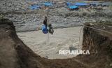 Menurut Kepala Desa Simpang Rahmat, Marikun, jembatan sling dibangun untuk membantu mengevakuasi warga dari tiga desa di seberang sungai yang terisolir saat banjir bandang dan longsor. (FOTO : Republika/Thoudy Badai)