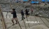 Sebulan pascabanjir bandang dan longsor, sejumlah infrastruktur penyeberangan di Aceh Tengah masih terputus. (FOTO : Republika/Thoudy Badai)