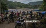 Kondisi tersebut membuat akses warga di desa wilayah Bener Meriah dan Aceh Tengah terisolir lantaran jembatan Krueng yang melintasi sungai Peusangan hancur. (FOTO : Republika/Thoudy Badai)