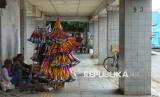 Pedagang menanti pembeli terompet di kawasan Jalan Pintu Besar Selatan, Glodok, Jakarta, Selasa (30/12/2025). Menurut pedagang, penjualan terompet tahun ini cenderung sepi dan lesu. Biasanya mereka mampu memproduksi hingga 1.000 terompet, namun tahun ini hanya sekitar 600 buah. Hingga hari ini, penjualan baru mencapai sekitar 200 terompet sejak mulai berdagang pada 6 Desember lalu, sebagian besar dijual kepada pedagang langganan. (FOTO : Republika/Prayogi)