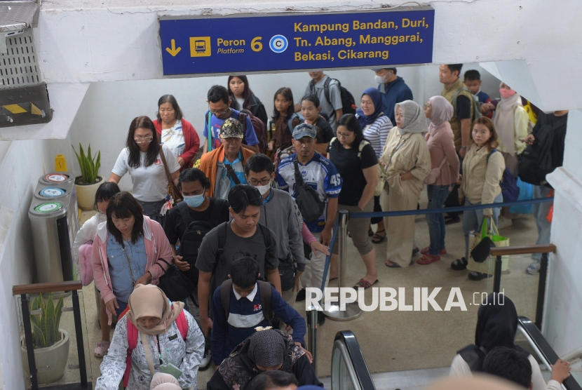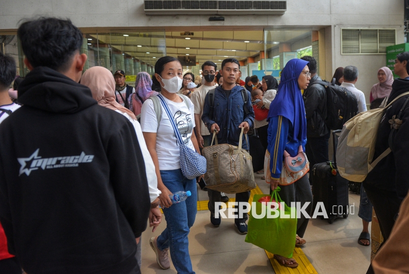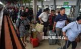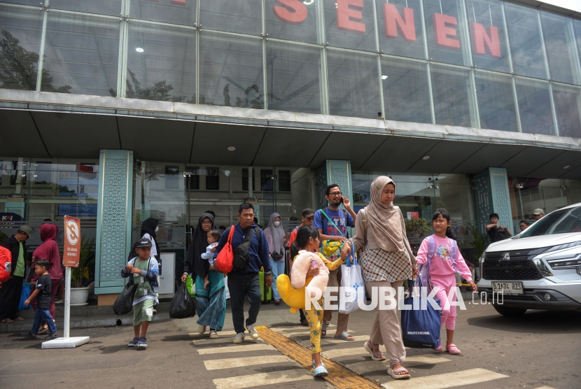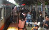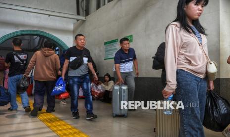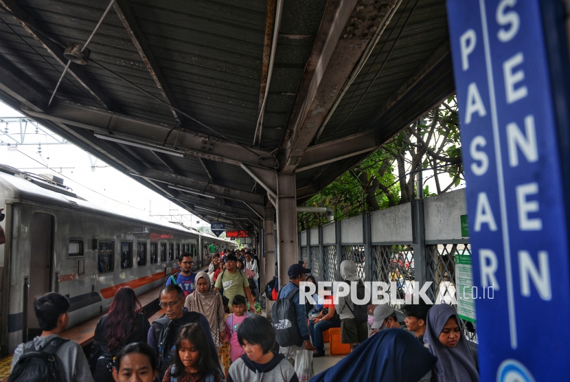 REPUBLIKA.CO.ID, JAKARTA -- Penumpang berjalan keluar saat tiba di Stasiun Pasar Senen, Jakarta, Ahad (4/1/2026).