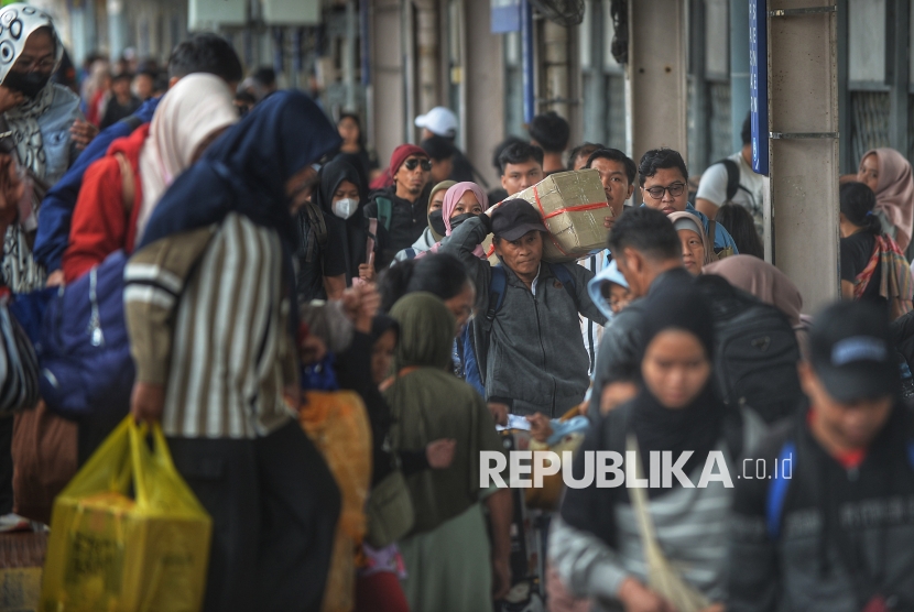 Suasana Stasiun Pasar Senen terpantau padat dan diperkirakan menjadi puncak arus balik libur Natal dan Tahun Baru (Nataru) hari ini.
