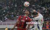 Pesepak bola Persis Solo Jose Claylton De Morais Dos Santos (kiri) berebut bola udara dengan pesepak bola Persita Tangerang Javlon Guseynov (kanan) pada pertandingan BRI Super League 2025-2026 di Stadion Manahan, Solo, Jawa Tengah, Ahad (4/1/2026). Tuan rumah Persis Solo dikalahkan Persita Tangerang dengan skor 1-3. (FOTO : ANTARA FOTO/Mohammad Ayudha)