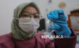 Dokter menunjukan cairan vaksin influenza Flubio. Gejala superflu umumnya menyerupai flu biasa, namun cenderung lebih berat dan muncul secara mendadak. Warga yang terinfeksi biasanya mengalami demam tinggi disertai menggigil, batuk berkepanjangan, sakit tenggorokan, serta pilek atau hidung tersumbat. (FOTO : Republika/Thoudy Badai)