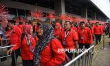 Para kader PDI Perjuangan berada di area Rapat Kerja Nasional (Rakernas) PDI Perjuangan di Beach City International Stadium (BCIS), Ancol, Jakarta, Sabtu (10/1/2026). Rakernas I PDI Perjuangan Tahun 2026 ini bertepatan dengan peringatan HUT ke-53 PDI Perjuangan dan berlangsung selama tiga hari, mulai 10 hingga 12 Januari 2026. Agenda utama Rakernas membahas langkah strategis partai sebagai penyeimbang pemerintahan serta penguatan konsolidasi organisasi menyongsong agenda politik ke depan. (FOTO : Republika/Prayogi)