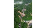 Foto udara sejumlah kendaraan antre menunggu jadwal dibukanya jalan di Lembah Anai, Tanah Datar, Sumatera Barat, Sabtu (10/1/2026). Antrean panjang terjadi mulai dari Kota Padang Panjang hingga ke Kayu Tanam, Padang Pariaman, karena menunggu jadwal jalan mulai dibuka pukul 17.00 WIB hingga pukul 08.00 WIB karena masih ada pengerjaan infrastruktur yang rusak pascabencana banjir bandang dan longsor di kawasan Lembah Anai. (FOTO : ANTARA FOTO/Iggoy el Fitra)