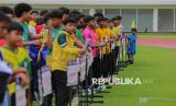Peserta mengikuti Opening Ceremony Liga TopSkor Greater Jakarta 2026 di Stadion Madya, Kompleks Stadion Utama Gelora Bung Karno (SUGBK), Jakarta, Ahad (11/1/2026). Liga TopSkor Greater Jakarta musim 2026 kembali digelar untuk musim ke-15 sejak pertama kali diselenggarakan pada 2011. Musim 2026 yang berlangsung pada Januari hingga Juni 2026 tersebut diikuti oleh 297 tim dari 8 kelompok usia yakni U-10 hingga U-17. Gelaran kompetisi pembinaan usia tersebut diharapkan mampu menjadi ruang tumbuh untuk generasi pesepakbola Indonesia dalam kompetisi sepakbola yang sehat, serta dapat melahirkan pemain muda berbakat di Tanah Air. (FOTO : Republika/Thoudy Badai)
