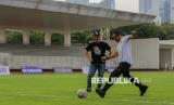 Exco PSSI Bidang Sepak Bola Usia Muda Arya Sinulingga (kanan) menendang bola disaksikan Direktur Liga TopSkor Yusuf Kurniawan (kiri) saat Opening Ceremony Liga TopSkor Greater Jakarta 2026 di Stadion Madya, Kompleks Stadion Utama Gelora Bung Karno (SUGBK), Jakarta, Ahad (11/1/2026). Liga TopSkor Greater Jakarta musim 2026 kembali digelar untuk musim ke-15 sejak pertama kali diselenggarakan pada 2011. Musim 2026 yang berlangsung pada Januari hingga Juni 2026 tersebut diikuti oleh 297 tim dari 8 kelompok usia yakni U-10 hingga U-17. Gelaran kompetisi pembinaan usia tersebut diharapkan mampu menjadi ruang tumbuh untuk generasi pesepakbola Indonesia dalam kompetisi sepakbola yang sehat, serta dapat melahirkan pemain muda berbakat di Tanah Air. (FOTO : Republika/Thoudy Badai)