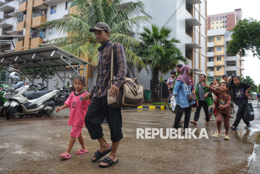 Warga terdampak relokasi Tempat Pemakaman Umum (TPU) Kebon Nanas menempati unit Rumah Susun Sederhana Sewa (Rusunawa) Pulogebang, Jakarta. Sebanyak 103 kepala keluarga (KK) terdampak relokasi, dengan 73 KK direlokasi ke rumah susun yang tersebar di enam lokasi, yakni Rusun Pulogebang, Cipinang Muara, Cipinang Besar Selatan, Jatinegara Barat, Jatinegara Kaum, dan Pondok Bambu, sementara 30 KK memilih mencari tempat tinggal secara mandiri. (FOTO : Republika/Prayogi)